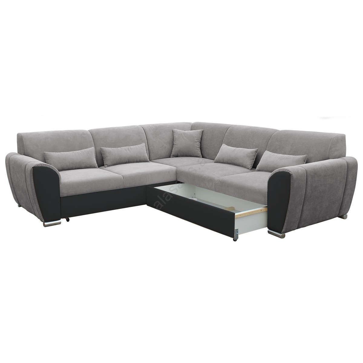 • Ausziehbares Ecksofa mit Stauraum in L-Form VISEU rechts grau/schwarz