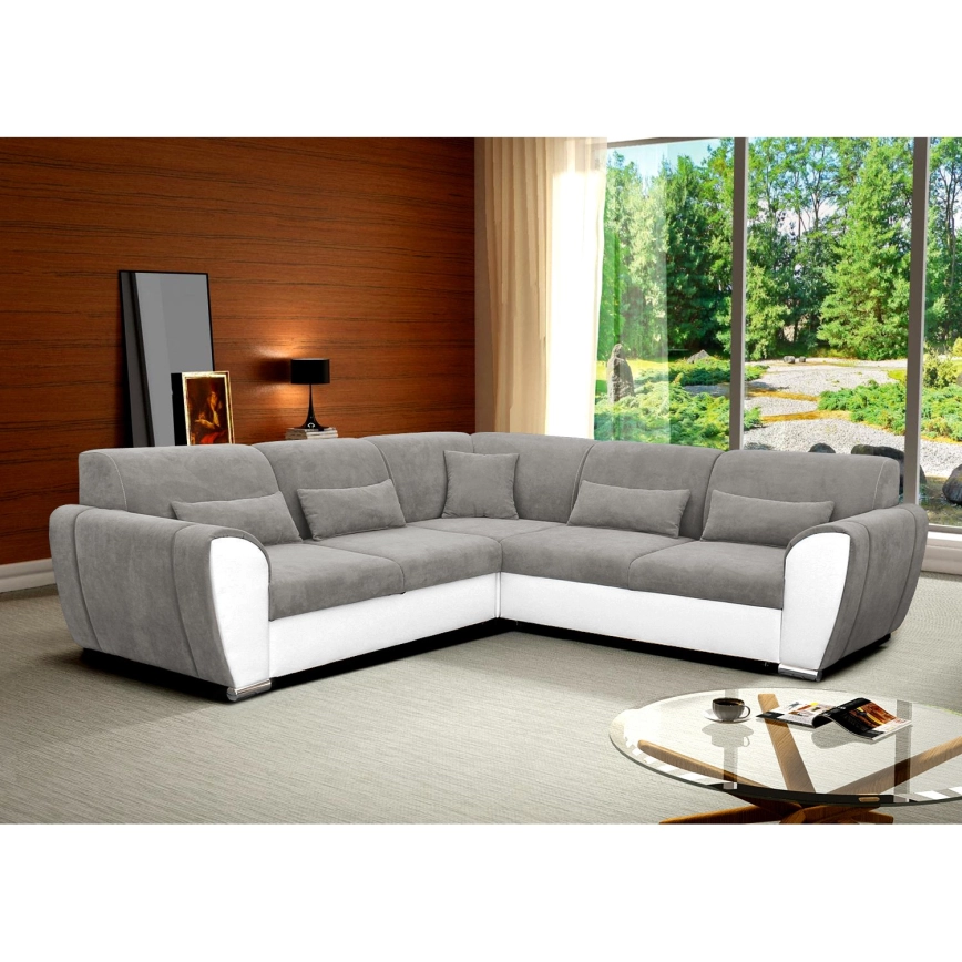 • VISEU Ecksofa mit Schlaffunktion und Stauraum, L-Form, rechts, grau/weiß