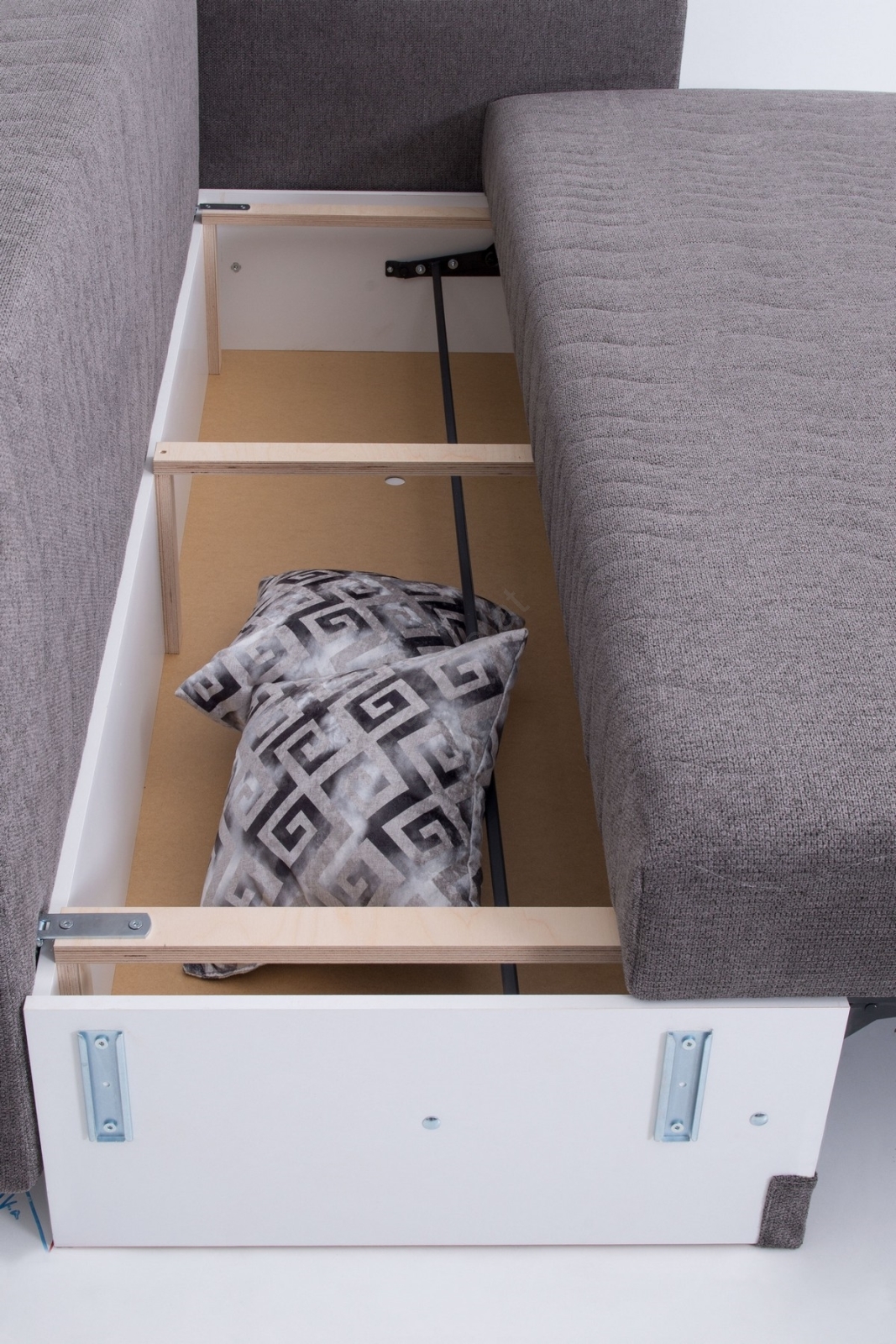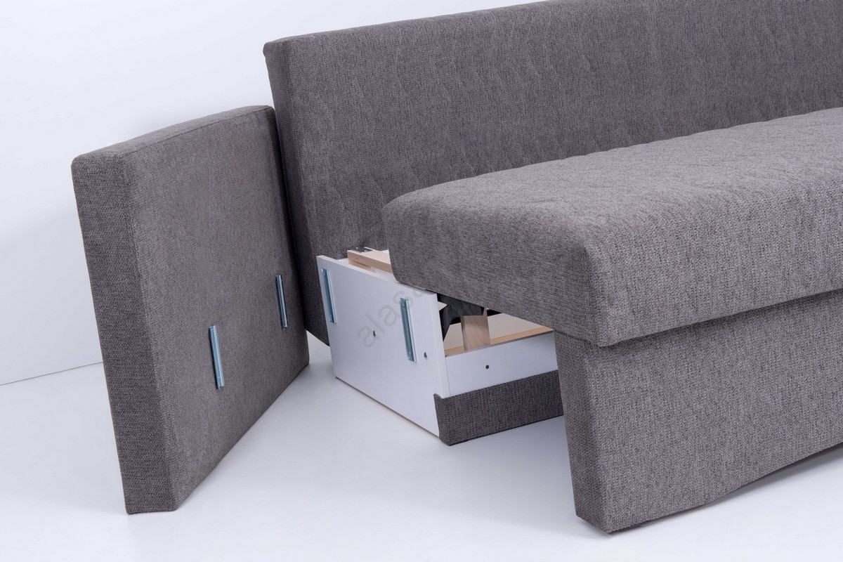 • Zum Sofa gehört ein großer Stauraum, der ideal für Bettwäsche oder andere Gegenstände ist.