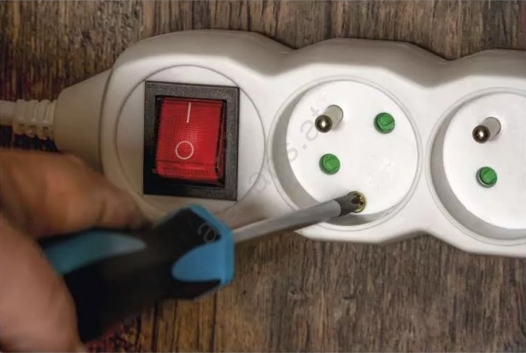 • Verlängerungskabel mit Steckdosen und Schalter.