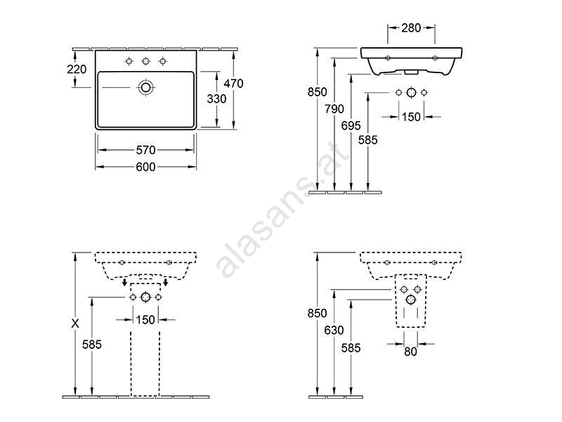 Villeroy & Boch 415860R1 - Wandwaschbecken AVENTO 60x47 cm Keramik/weiß