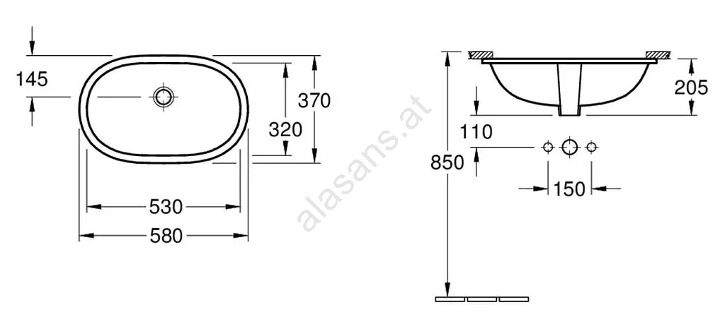 • Waschtischarmatur und Ablauf sind nicht im Lieferumfang enthalten.