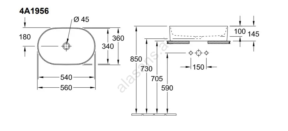 Villeroy & Boch 4A1956R1 - Aufsatzwaschbecken COLLARO 56x36 cm Keramik/Weiß