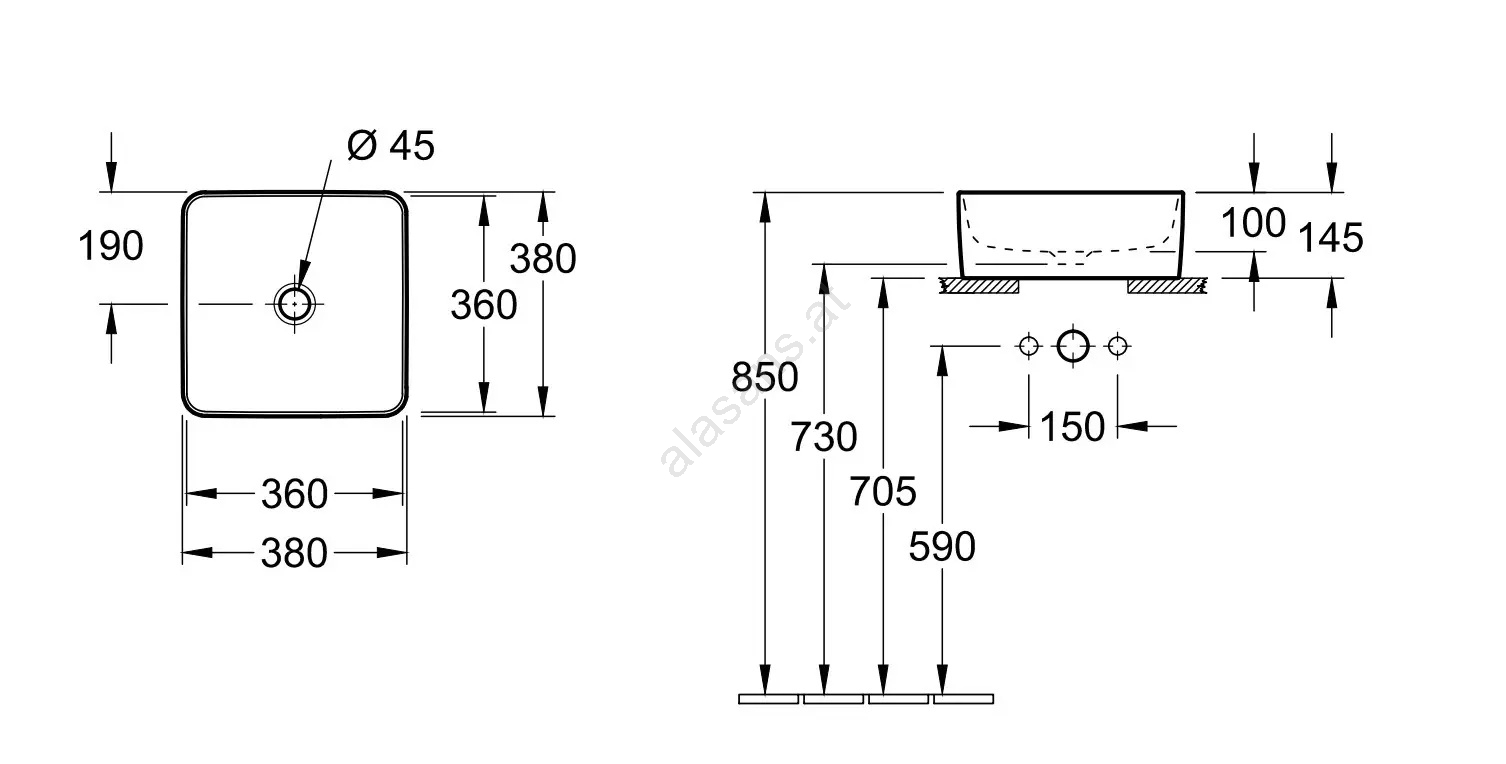 Villeroy & Boch 4A213801 - Aufsatzwaschbecken COLLARO 38x38 cm Keramik/weiß