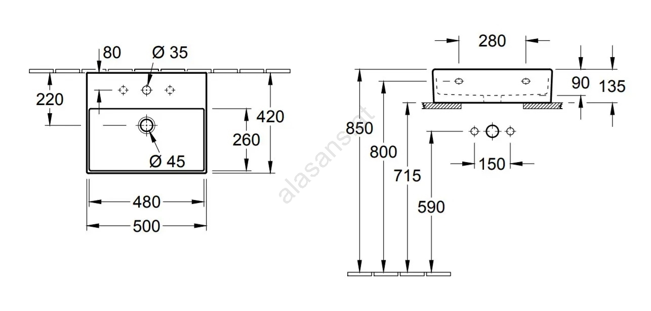 Villeroy & Boch 4A225G01 - Wand-/Aufsatzwaschbecken MEMENTO 50x42cm Keramik/weiß