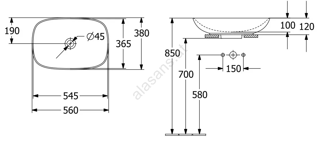 Villeroy & Boch 4A490001 - Aufsatzwaschbecken LOOP&FRIENDS 56 x 38 cm, Keramik, weiß