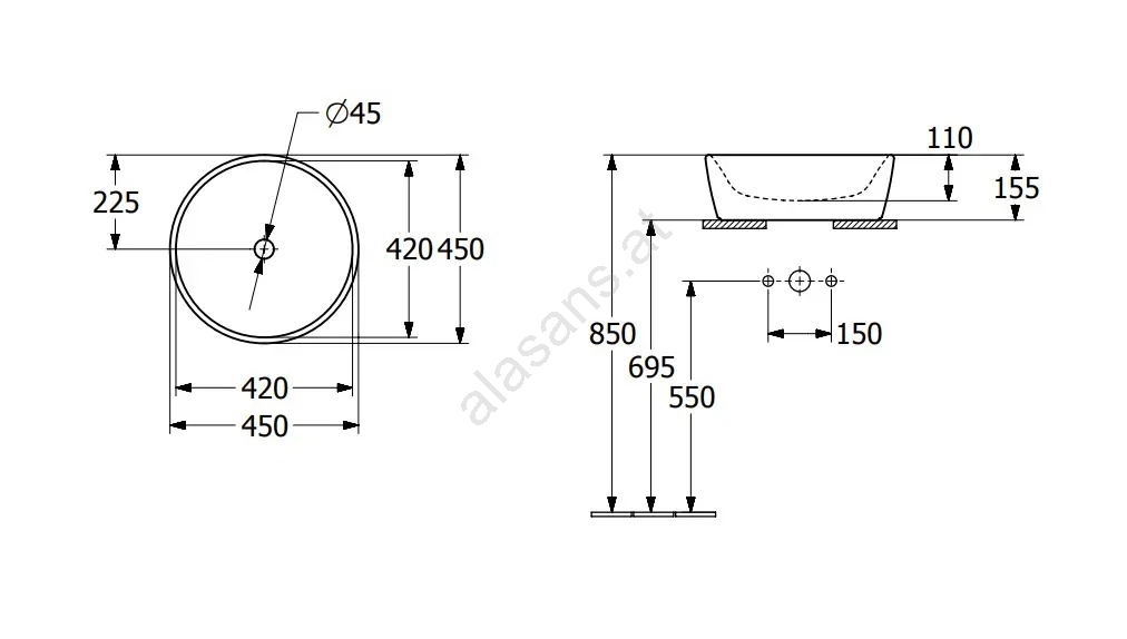 Villeroy & Boch 5A254501 - Aufsatzwaschbecken ARCHITECTURA Ø 45 cm Keramik/weiß