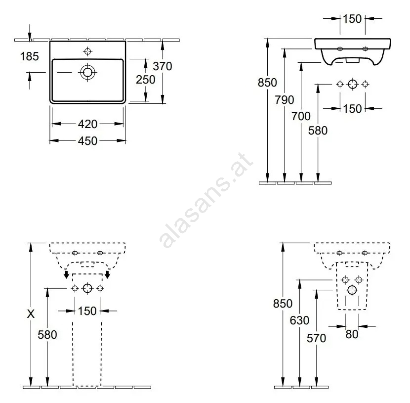 Villeroy & Boch 73584501 - AVENTO Wandwaschbecken 45x37 cm Keramik/weiß