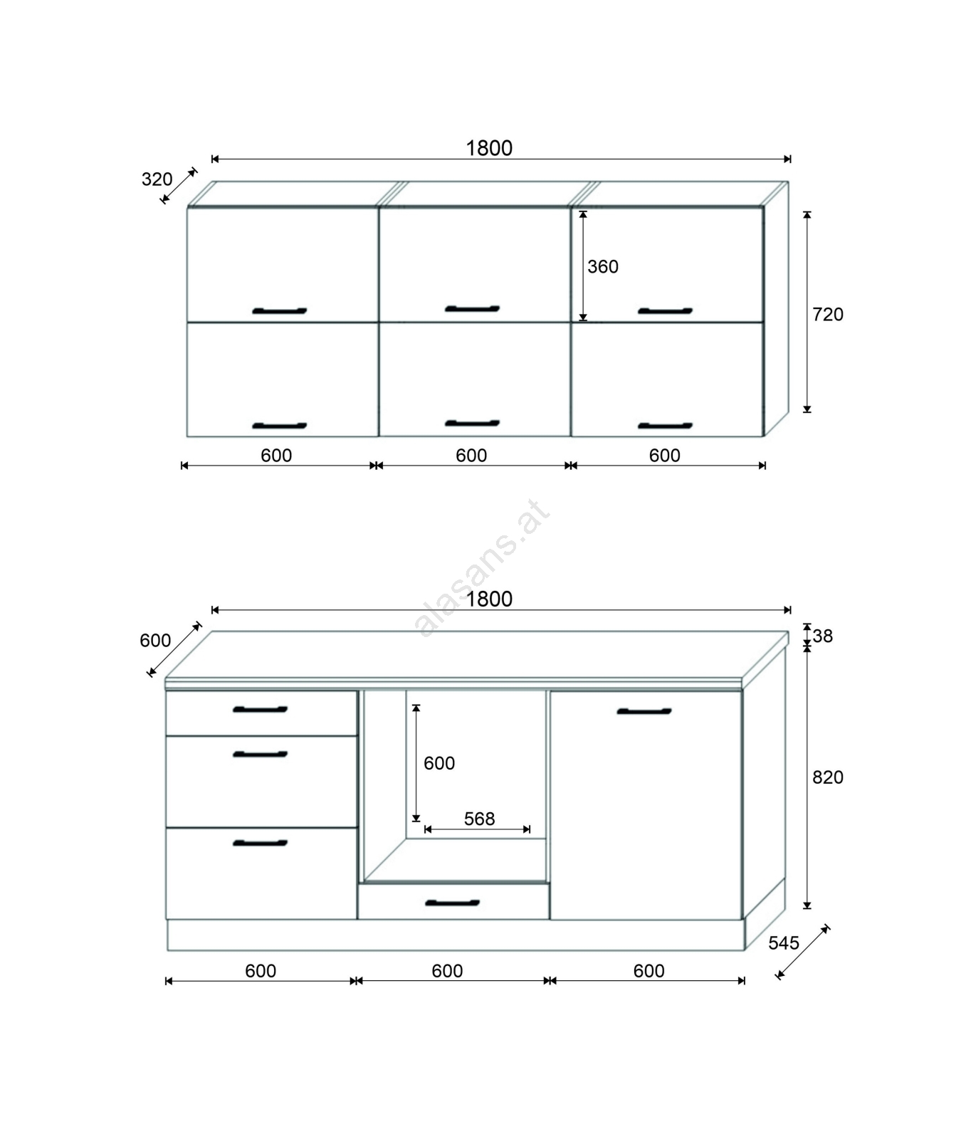 • Im Lieferumfang sind keine Elektrogeräte, keine Spüle und keine Küchenarmatur enthalten.
