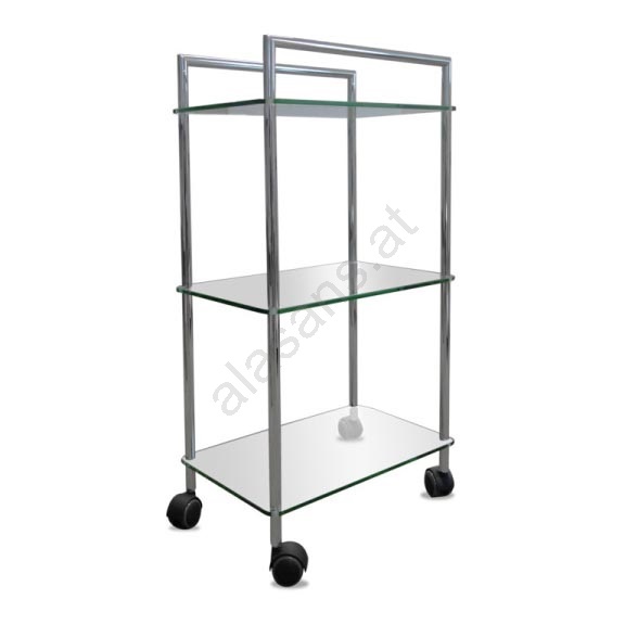 • Moderner Badezimmerwagen mit eleganter silberner Ausführung.