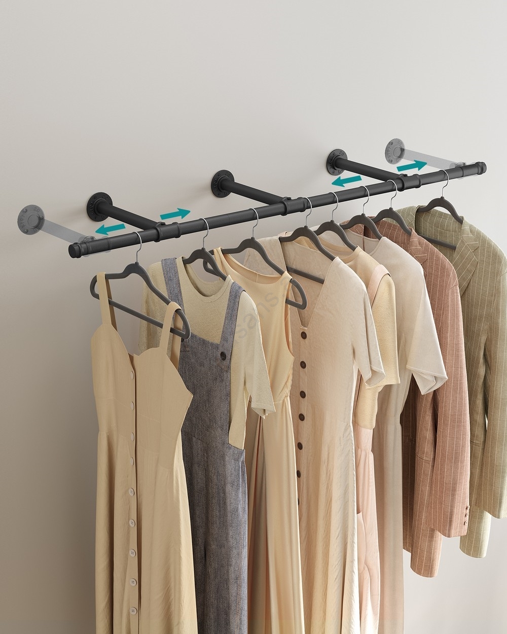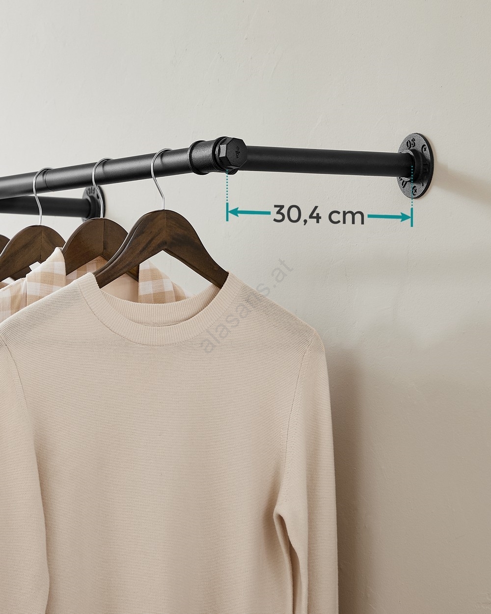 • Die Halterung nutzt die Wandfläche optimal und erweitert den Stauraum zum Organisieren und Aufhängen von Kleidung, wenn im Schrank wenig Platz ist, ohne dabei Bodenfläche zu beanspruchen.