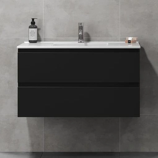 Waschbeckenunterschrank HENRY mit Waschtisch, 91 cm, schwarz
