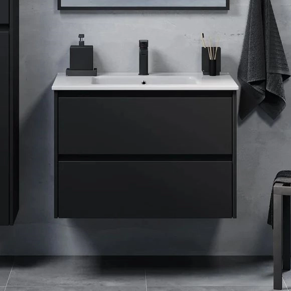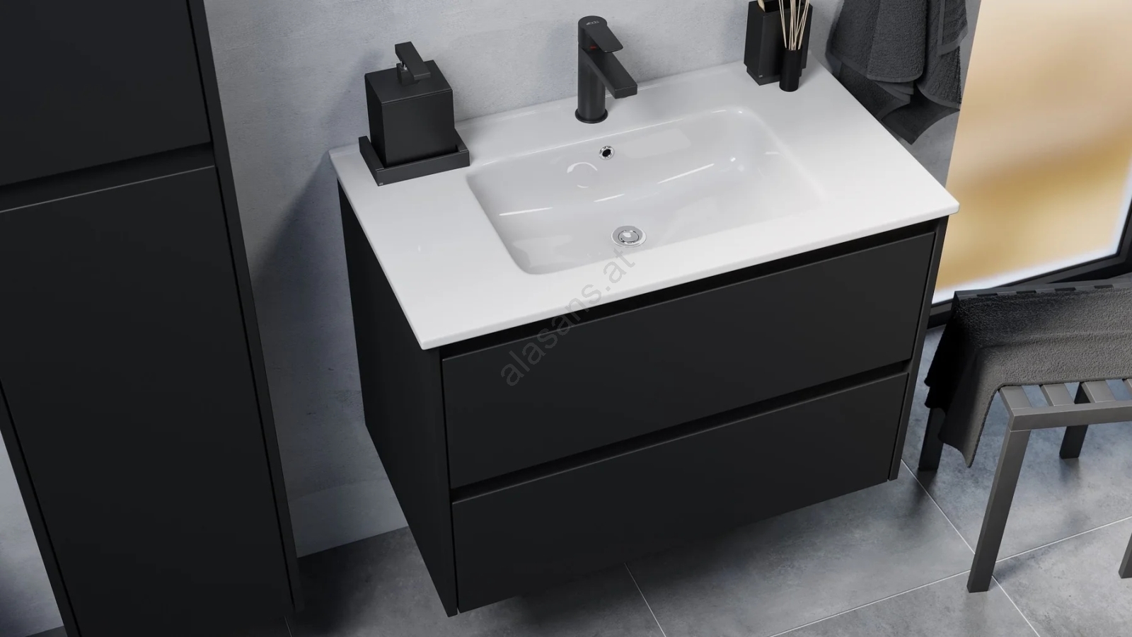 • Waschtischunterschrank mit Waschbecken MOLDE, 80 cm, schwarz