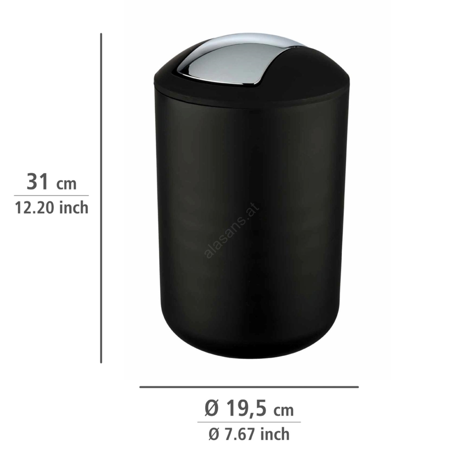 WENKO 21212100 - Abfalleimer BRASIL 19,5x31 cm schwarz/Glanzchrom