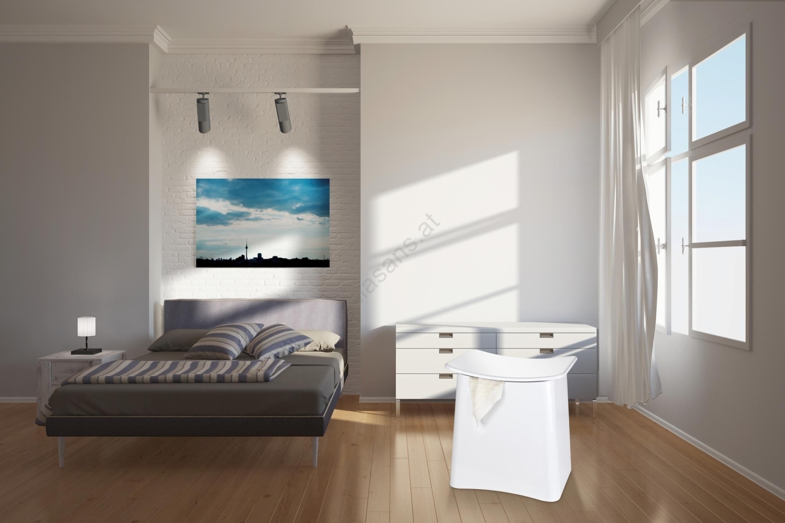 • Die weiße Ausführung mit kontrastierendem schwarzem Sack wirkt elegant und zeitlos.