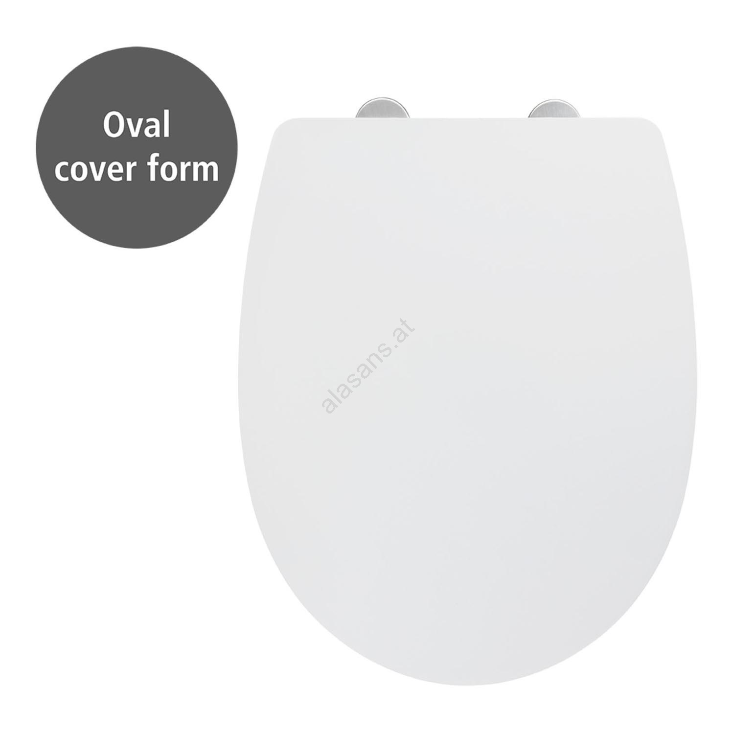 • Styliger WC-Sitz WENKO Tavola in elegantem Weiß mit hochglänzender Oberfläche.