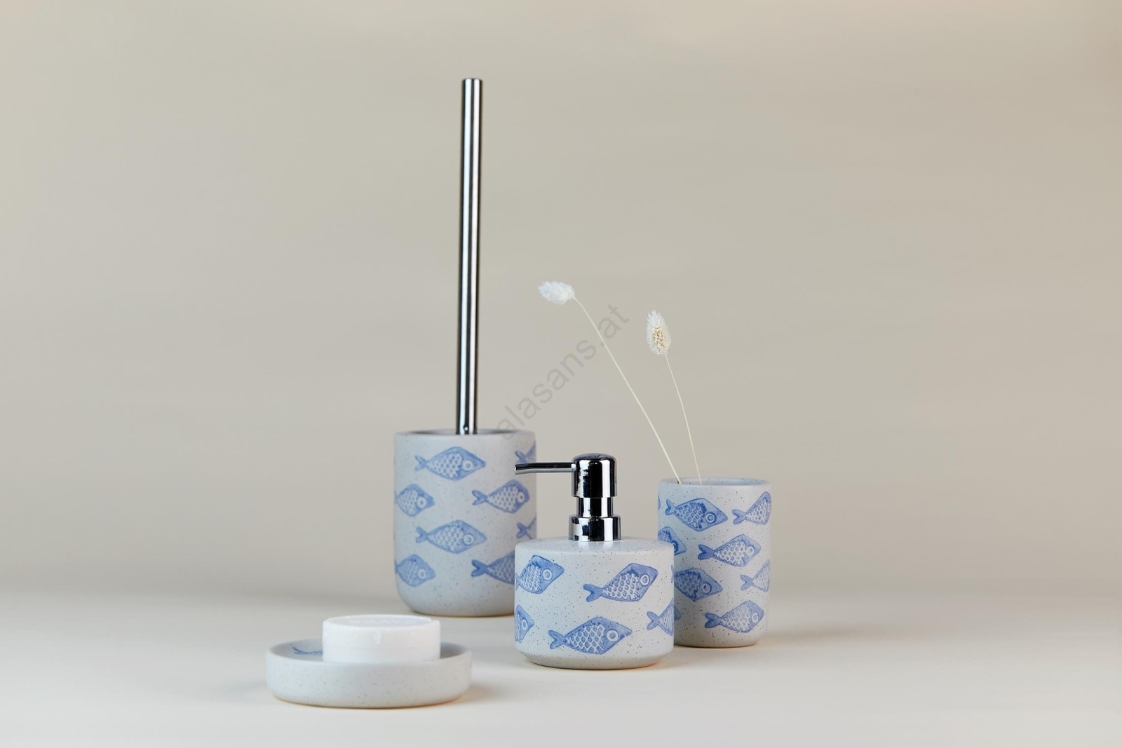 • Handbemaltes Design mit maritimem Motiv für ein stilvolles Badezimmer.