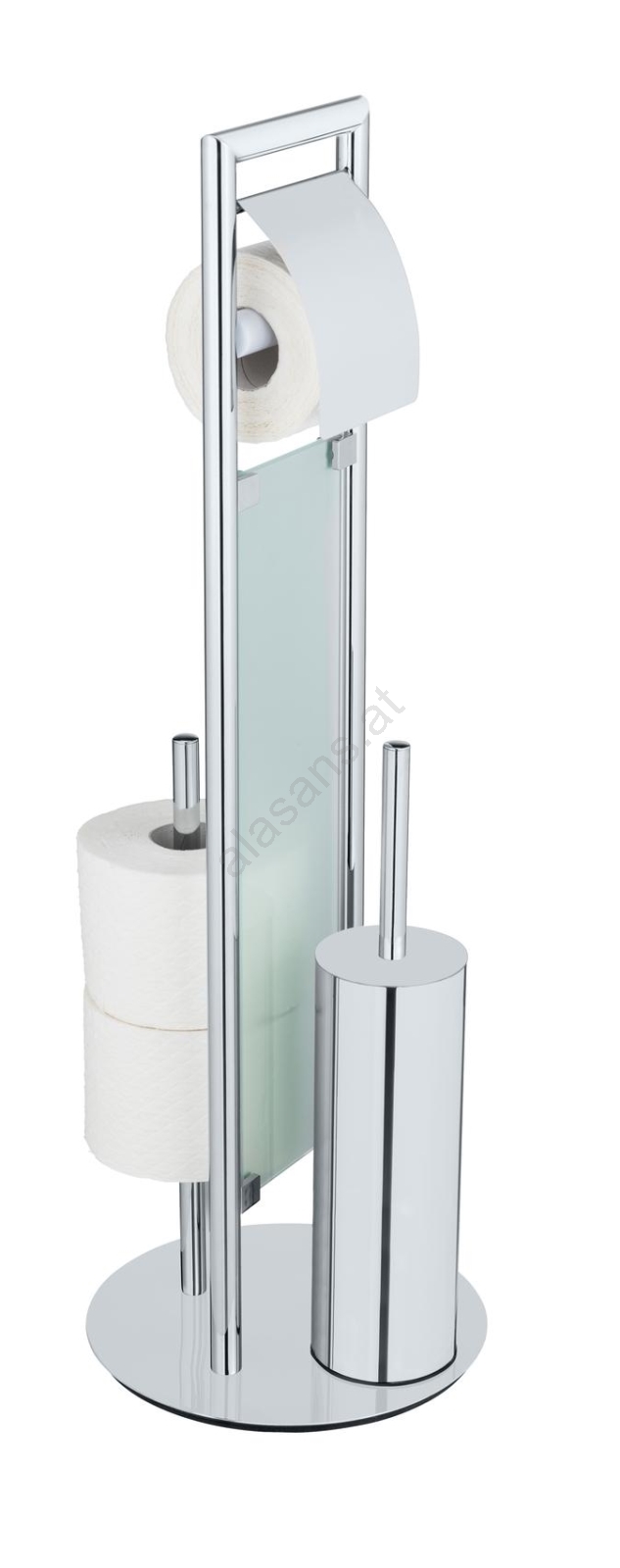 • Kombiniert Toilettenbürste mit geschlossenem Behälter, Toilettenpapierhalter und Fach für Ersatzrollen.