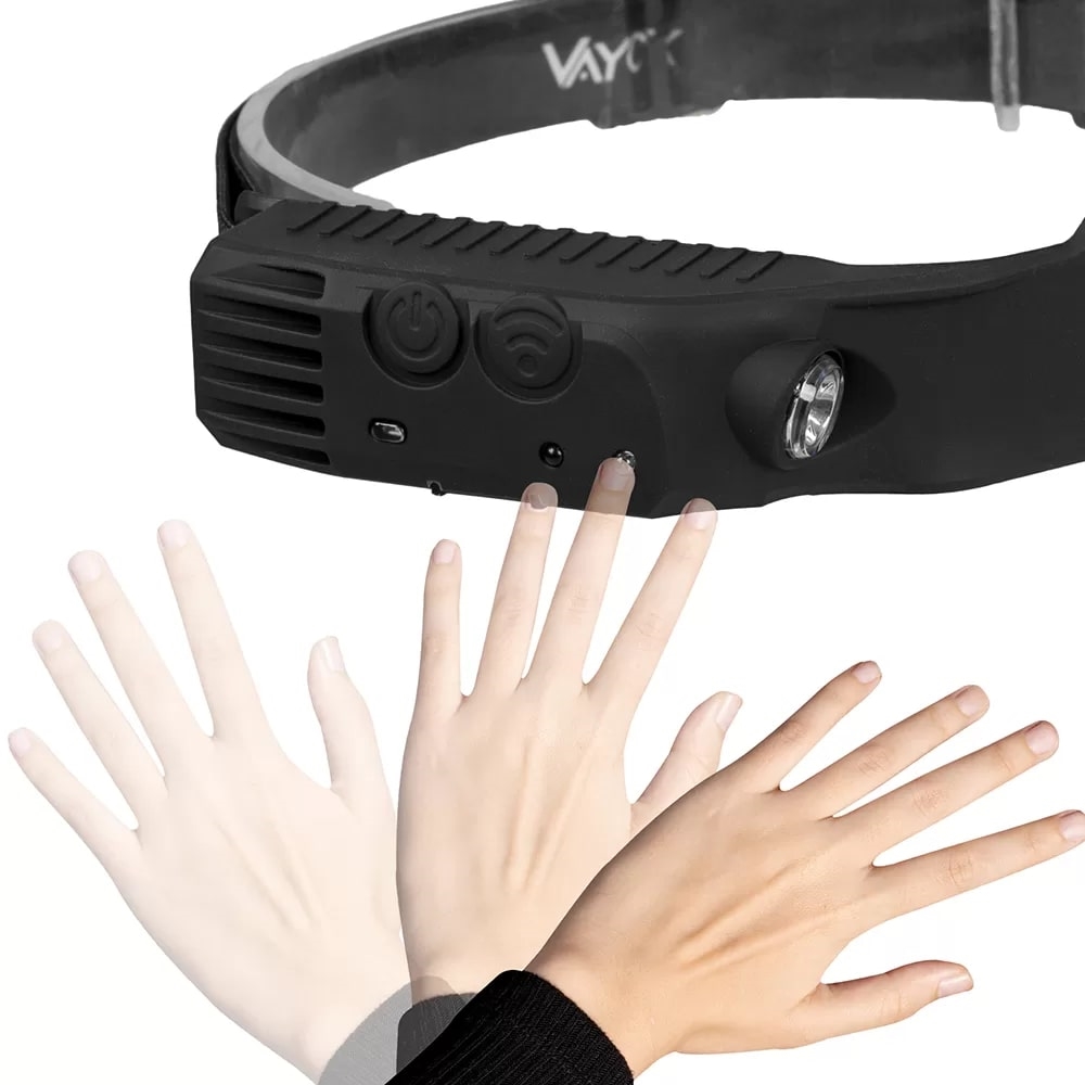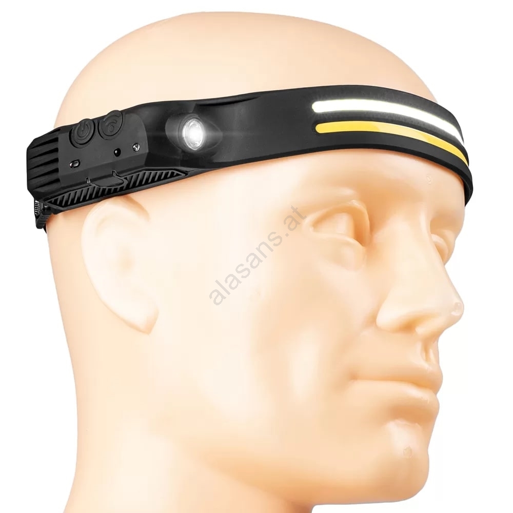 • LED wiederaufladbare Stirnlampe mit Bewegungssensor.