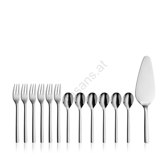 • Das Set enthält 6x Dessertgabeln, 6x Kaffee-/Teelöffel und 1x praktischen Tortenheber.