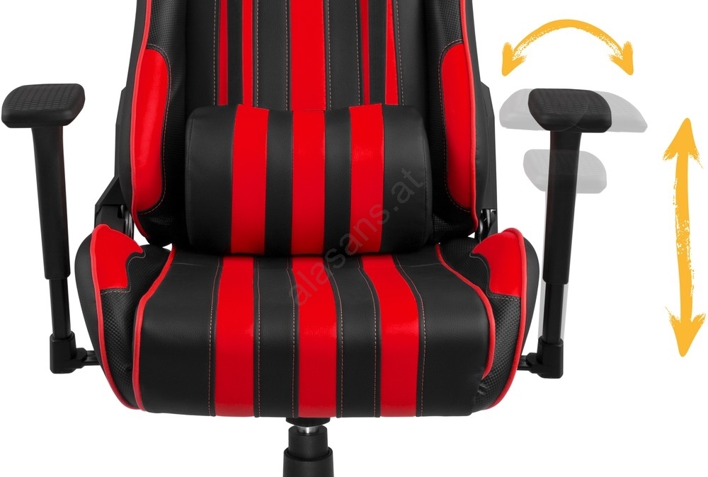 • Die weich gepolsterten Armlehnen sind 3D-verstellbar, sodass Sie ihre Höhe, den horizontalen Winkel und die Länge für die optimale Position Ihrer Schultern, Ellbogen und Hände einstellen können.