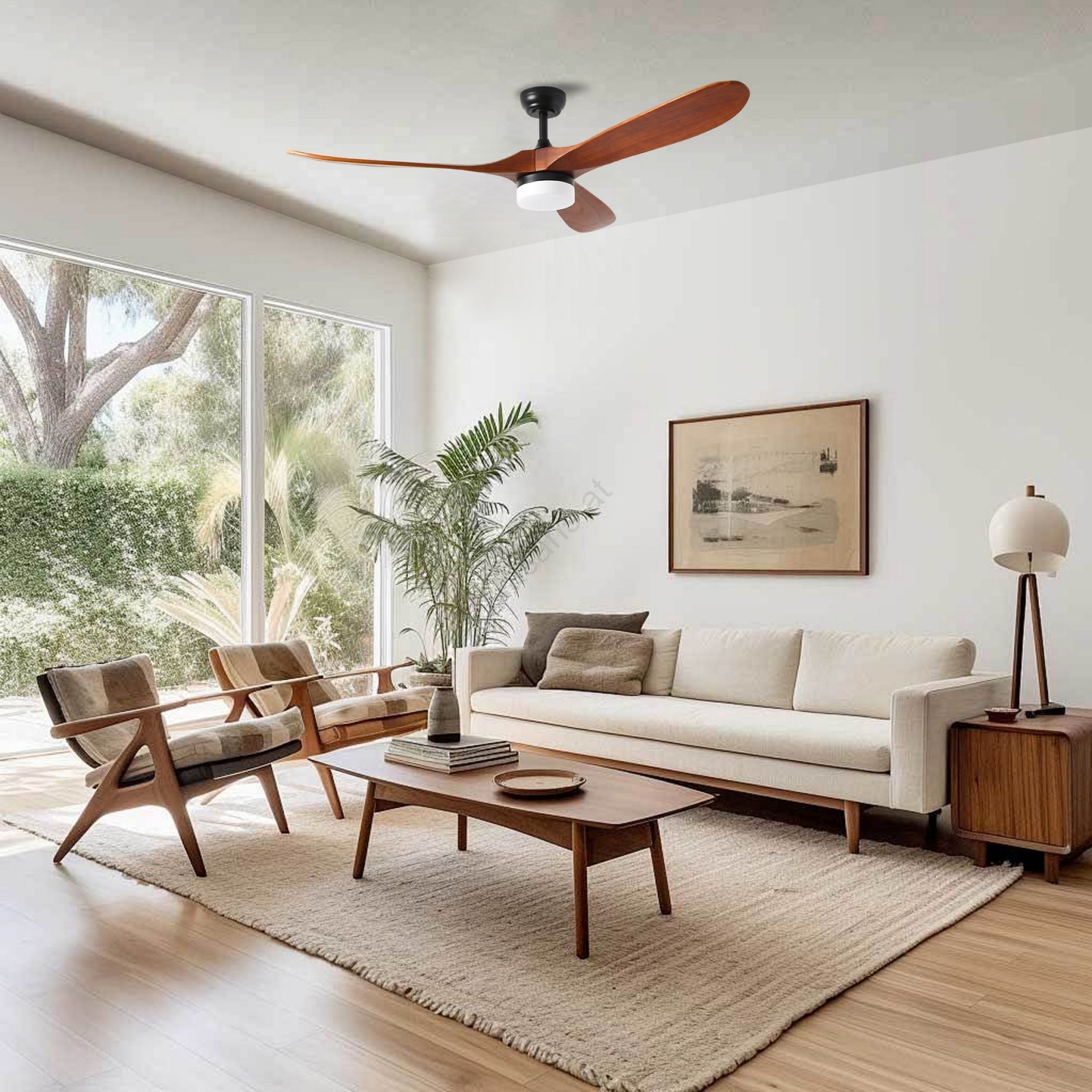 • Deckenventilator mit LED-Beleuchtung erfrischt den Raum an heißen Sommertagen.