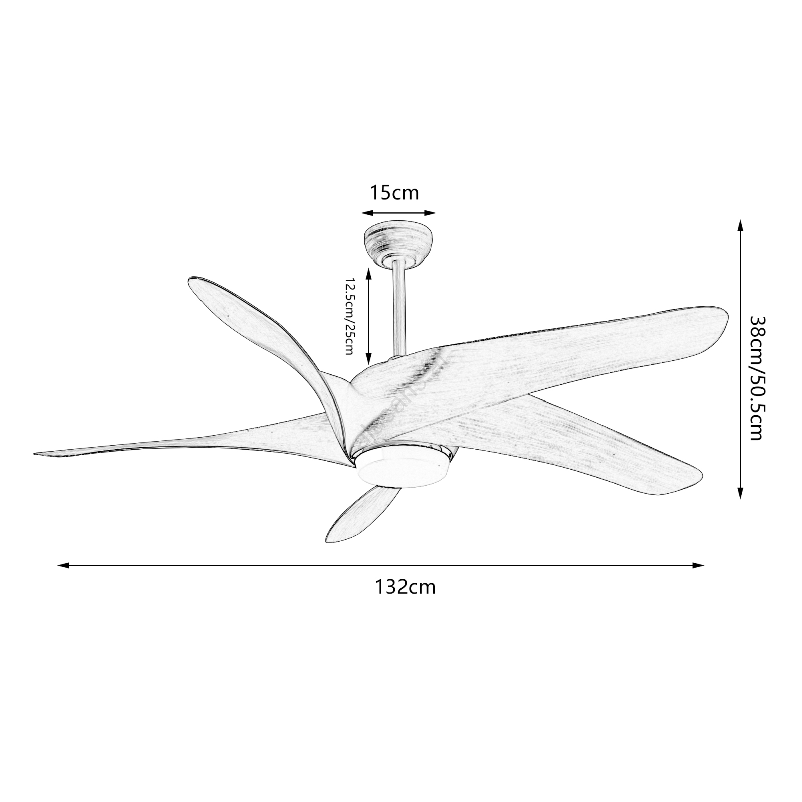 • Deckenventilator mit LED-Beleuchtung erfrischt den Raum an heißen Sommertagen.