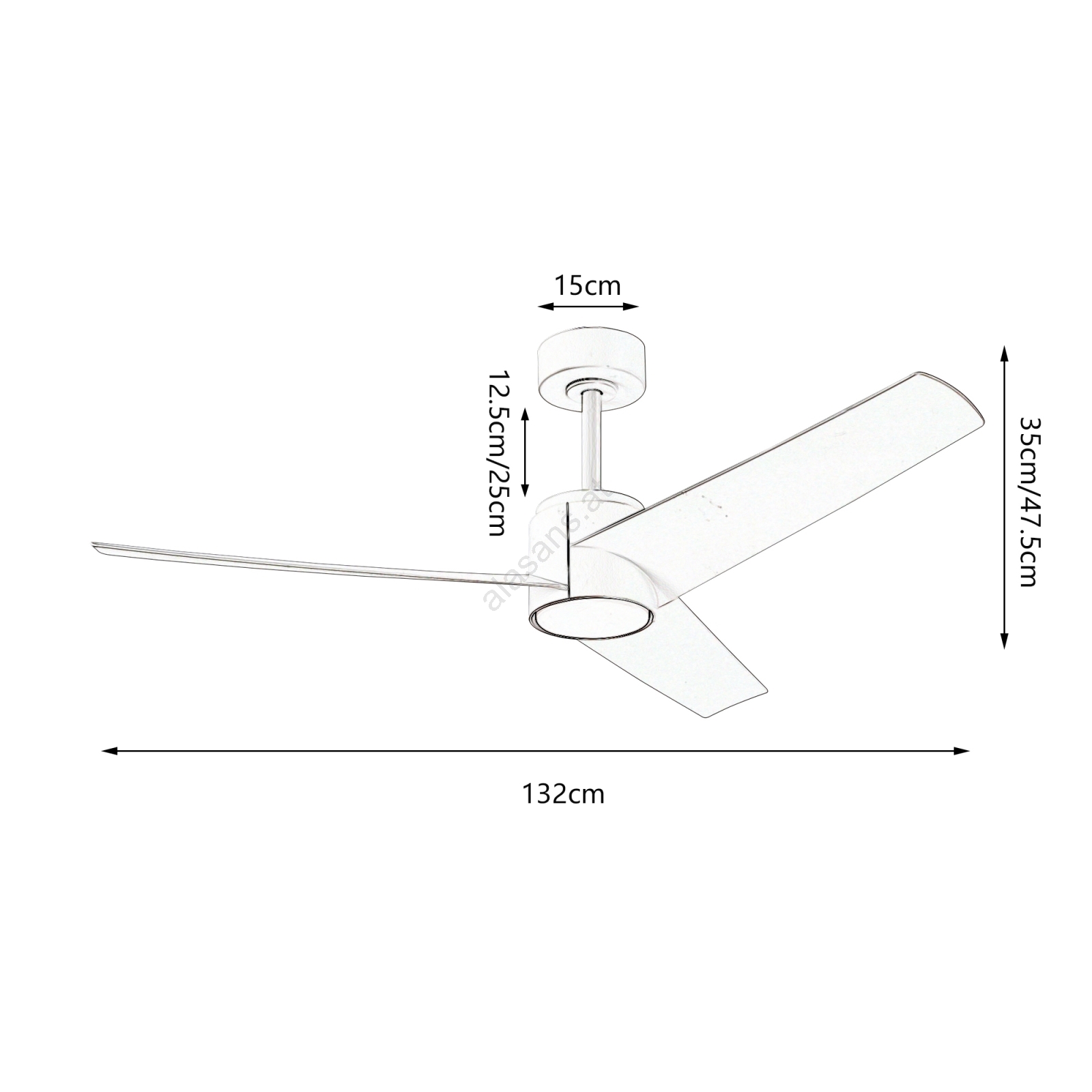• Deckenventilator mit LED-Beleuchtung erfrischt den Raum an heißen Sommertagen.