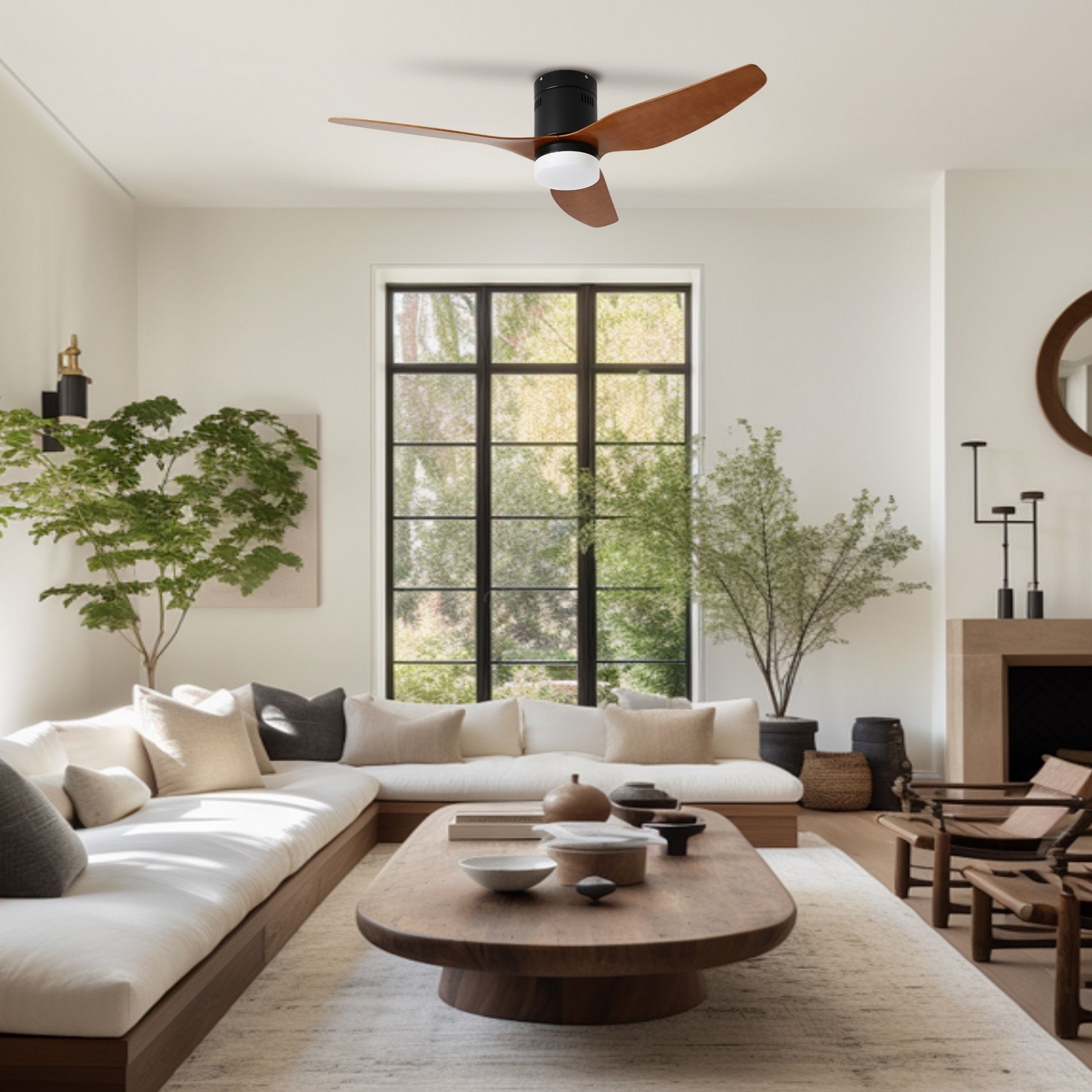 • Deckenventilator mit LED-Beleuchtung erfrischt den Raum an heißen Sommertagen.