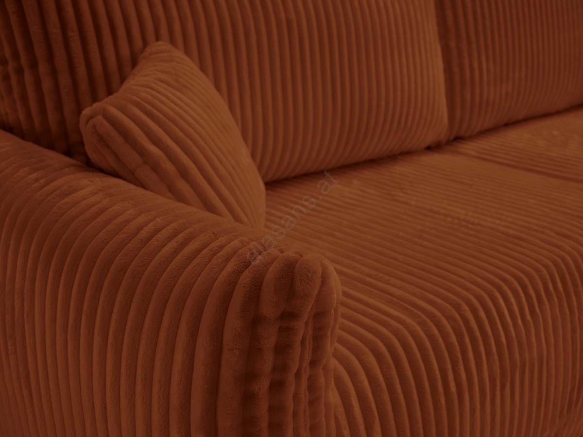 • Die Rückseite des Sofas ist mit hochwertiger Polsterung versehen, sodass das Sofa frei im Raum platziert werden kann.